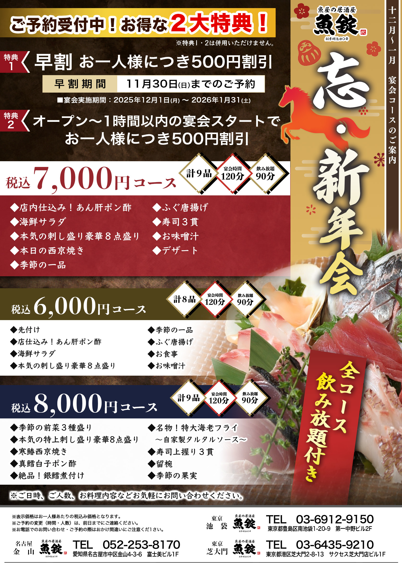 ■12月~1月末 忘・新年会 ご予約承り中!