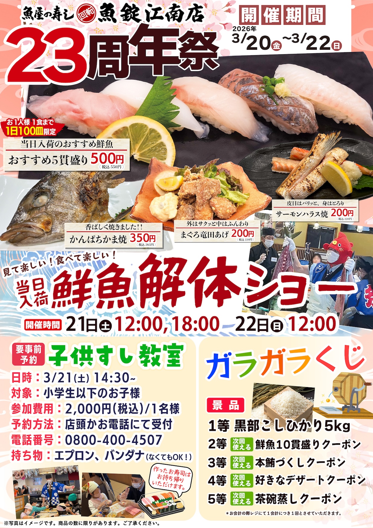 ■ おかげさまで江南店23周年祭 3月20日(金)より開催!!